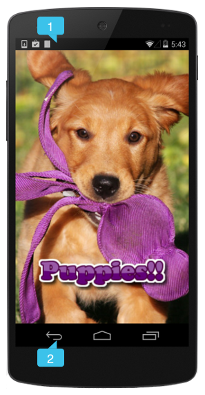 Figure 1. System bars,包含[1]状态栏,和[2]导航栏。