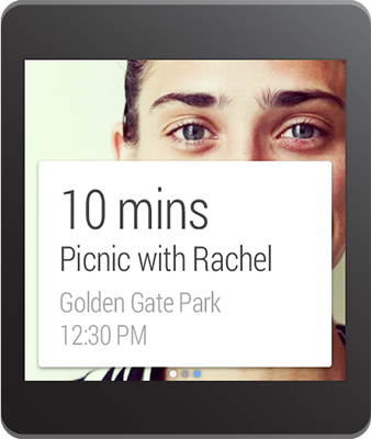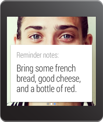 当开发者想要在不需要用户在他们的手机上打开app的情况下,还可以允许表达更多的信息,那么开发者可以在可穿戴设备上的Notification中添加一个或多个的页面。添加的页面会马上出现在主 Notification 卡片的右边。