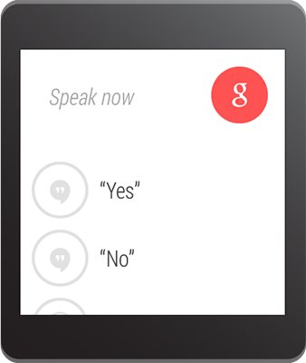 Note:Android模拟器并不支持语音输入。如果使用可穿戴式设备的模拟器的话,可以打开AVD设置中的Hardware keyboard present,实现用打字代替语音。